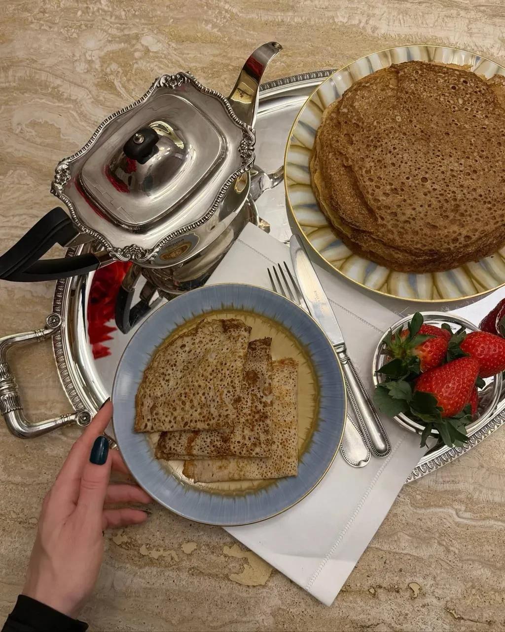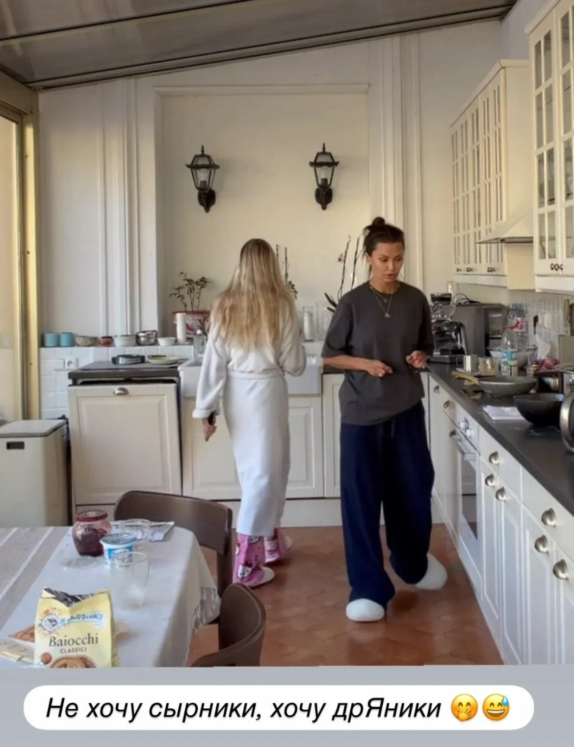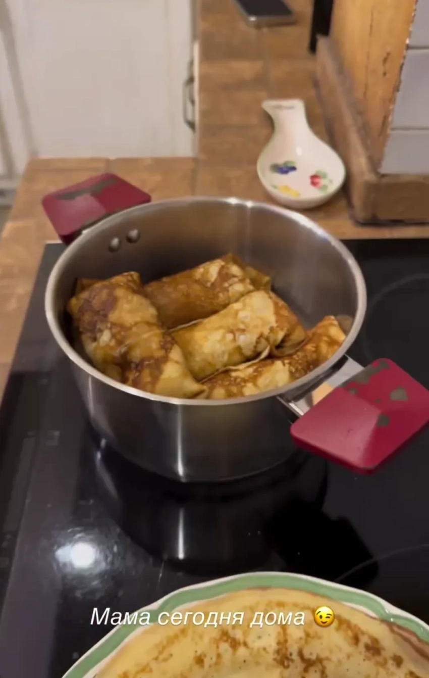 Фото Яны РудковскойНаталья Давыдова поделилась своими "ажурными" блинами, которые она готовит на кефире и холодной воде, а подаёт с клубникой на серебряном подносе. Почти бывшая жена Джигана Оксана Самойлова решила не тратить время на готовку блинов дома и заказала доставку, а Виктория Боня еле угодила своей дочери Анджелине, которой предложила сырники, но она хотела драники. В итоге мать и дочь сошлись на блинах.