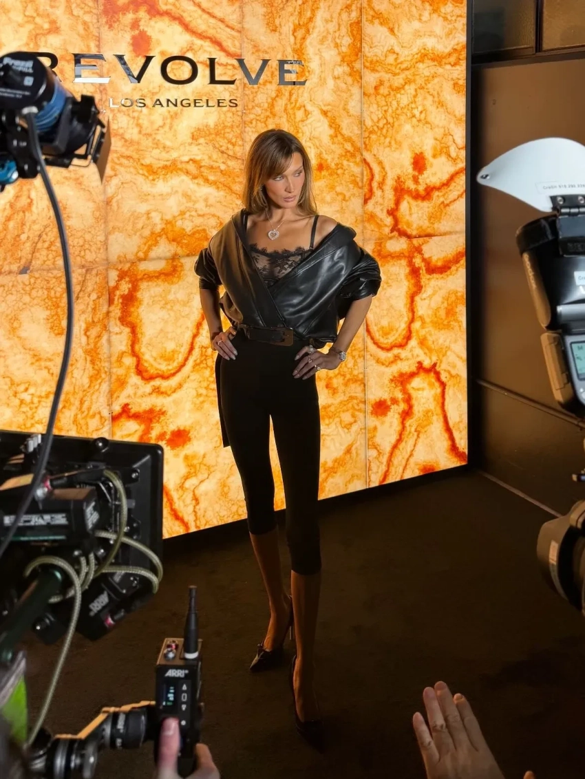 29-летняя супермодель появилась на мероприятии в total black образе: на ней был кружевной прозрачный топ и велосипедки. Поверх она накинула кожаную куртку, а дополнила наряд бриллиантовой подвеской в форме сердца и остроносыми туфлями на каблуках. Стоит отметить, что ивент был посвящён запуску Revolve Los Angeles, дебютного одноименного бренда ритейлера, а сама Хадид является первым амбассадором молодой марки.