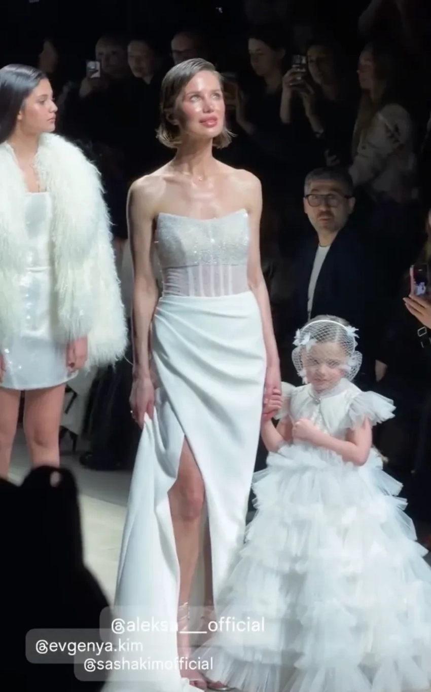 Сын Марии КожевниковойРанее в рамках Недели моды в Москве Аврора Киба в свадебном платье и внучка экс-президента Узбекистана Марьям Тилляева вышли на подиум для бренда Solangel, а Александр Рогов, Эвелина Хромченко, Юлия Барановская и Мария Миногарова посетили показ Алёны Ахмадуллиной.