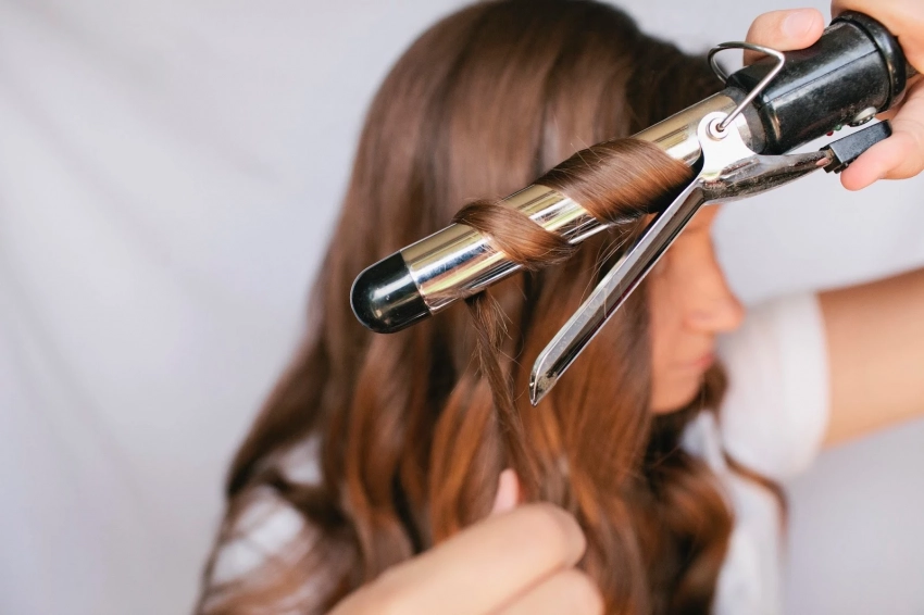 • Быстро накрути пряди на крупную плойку (32 мм), держа 5–7 секунд.